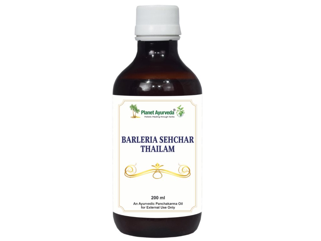 Barleria Sechar Thailam je komplexní formule obsahující 23 pečlivě vybraných bylin zpracovaných v sezamovém oleji a kravském mléce. Hlavní bylina Sahachara (Barleria) je v ájurvédě známá jako "královna pro Vata poruchy", zejména ty, které postihují dolní polovici těla.